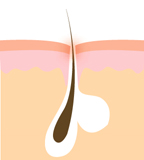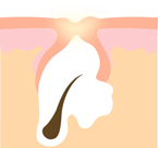 2.ニキビのできはじめ あまり過剰に皮脂が分泌されると酸化され硬くなった皮脂が毛穴を詰まらせたり、表面の角質層で毛穴がふさがれたりして、皮脂が毛穴につまってしまいます。毛穴の出口がふさがっているのに、皮脂がどんどん分泌されると、毛穴の中に皮脂と角質の混じりあった塊ができます。それを面皰(コメド)といいます。 |
