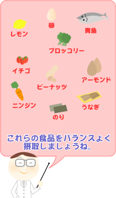 ビタミンC、ビタミンE、ベーターカロテンなどの抗酸化力のある成分と一緒に食べることが大切