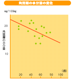 新陳代謝の遅れから、お肌が硬くなり、ごわつき、カサつくようになります。これではメイクののりが悪くなって当然なのです。また、皮脂分泌はお肌の働きが下降気味になっってきたことを、如実に示します。ホルモンの関係や、お肌の血流量に大きく関係している皮脂分泌です。加齢によるホルモン低下や、お肌の血流量が低下してくると、新陳代謝が悪くなり、それに伴い皮脂分泌も減少し始めます。皮脂分泌はお肌だけの問題ではなく、身体そのものの老化の現れも示していますので、スキンケア面からだけでなく、日々の食事、睡眠などの生活習慣もあわせて、対応することが大切です。 |