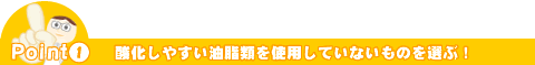 最近の天然志向でオリーブ油やひまわり油、大豆油など植物性の天然油脂を使っている製品がふえています。イメージ的には良いのですが、紫外線下で使用するような化粧品ではあまりお勧めできません。
