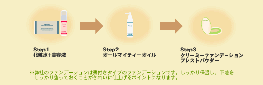 油性下地(ピュアオイル)+油性ファンデーション(非乳化型) |