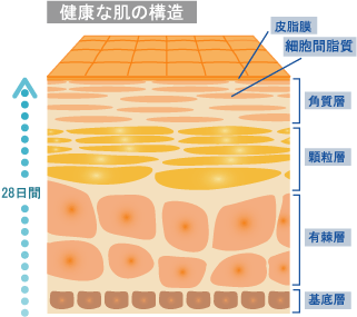 ●皮脂膜 皮膚表面を多い水分の蒸発を防いでいます。 |
