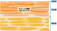 | 細胞間脂質の主成分はスフィンゴ脂質のセラミドです。角質細胞をタイルにたとえると、セラミドはそれらを張り合わせるタイルの目地の役割をします。セラミド自体にも水分保持の役割があるのですが、NMFを抱え込みむことでより水分を保持し、角質細胞をサンドイッチ状に張り合わせることで、肌表面はなめらかになり、水分の蒸発を防ぐことができるのです。みずみずしく、滑らかな肌には、このセラミドが必要不可欠なのです。 | |
