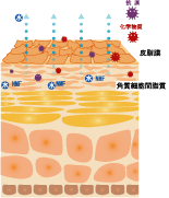 | ●敏感乾燥肌 皮脂膜、NMF、細胞間脂質の働きが悪くなると、角質細胞がめくれ上がって、お肌のバリアゾーンが崩れてしまいます。わかりやすく言うとお肌に小さな隙間がたくさんできているのです。その隙間から抗原や化学物質が侵入しやすくなりアレルギー反応を起こしやすくなります。加えて、その隙間から水分が蒸発してしまい、水分保持ができなくなり、敏感乾燥肌になってしまうというわけです。 肌がカサカサになってしまった乾燥肌の角質層水分量は10%以下だと言われています。(普通肌では15%〜20%の水分量) |