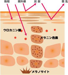 私たちのお肌には、もともと紫外線を防御する機能が備わっています。まず、そのしくみを見てみましょう。