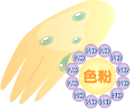 シリコンタイプのものは色素顔料をシリコン成分が囲っているような構造になっています。手の甲を水で流したときに、水とシリコンは油以上に相性が悪いですから、水をはじいて、まず洗い落とせません。このタイプのファンデーションの利点としては、