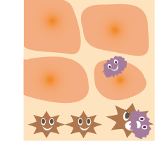 ←情報伝達物質の指令をうけて、メラノサイト内でチロシナーゼという酵素が活性酸素を吸収、分解します。