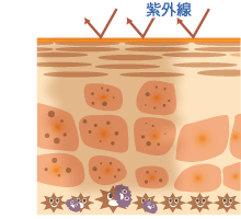 ←情報伝達物質は、紫外線の刺激でメラノサイトにメラニンを作るように指令を出します。